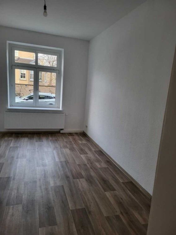 Vom zentralen Flur kommen Sie zum Wohnzimmer, dem Schlafzimmer, dem Bad mit Wanne und in die Küche. Von der Küche ist der Zugang zum Balkon. Alle Räume haben große helle Fenster und pflegeleichte Böden.