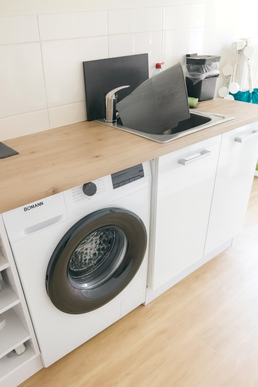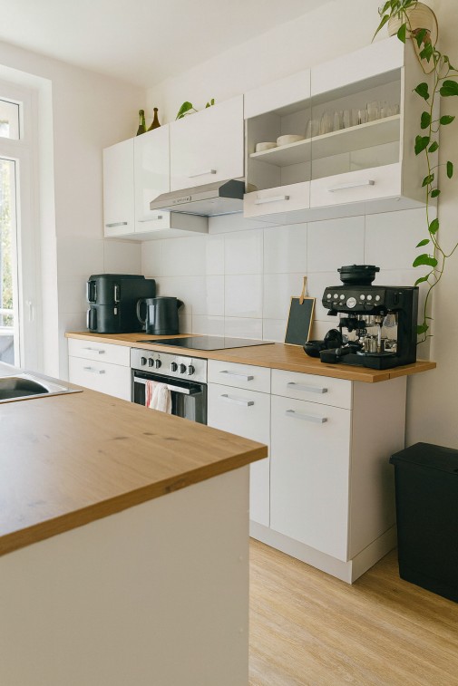 den sonnigen Balkon eine sehr angenehme Wohnatmosphäre. Eine moderne Einbauküche