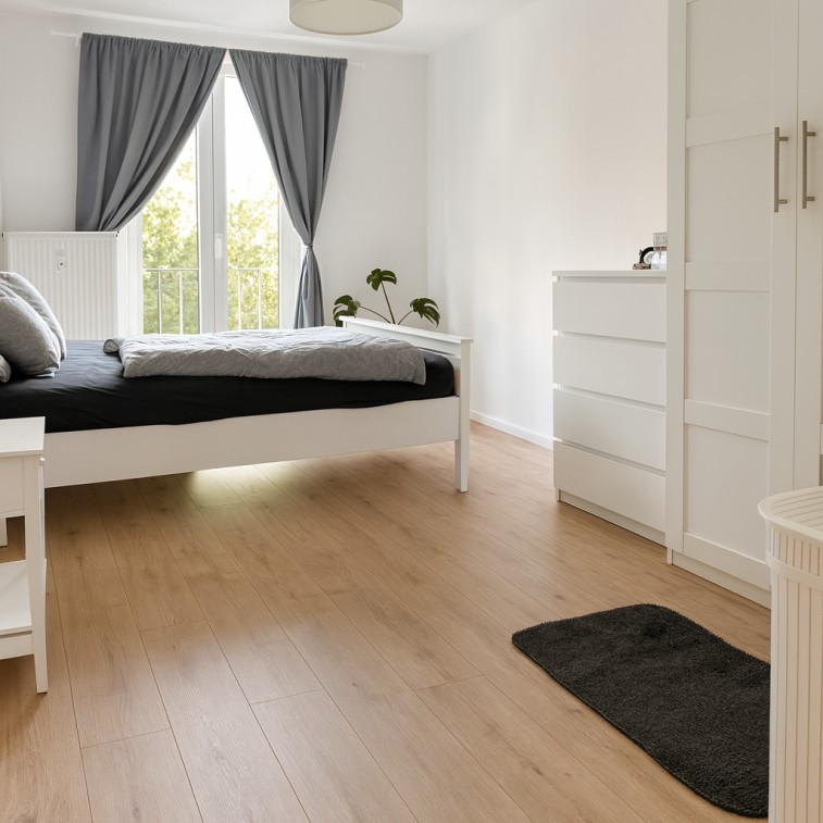 Die Wohnung befindet sich im zweiten Obergeschoss und bietet durch ihre großen Fenster und