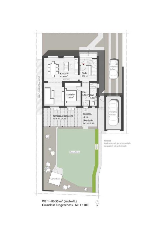 � ca. 86 m² Wohnfläche (72 Innen + 14 Außen)