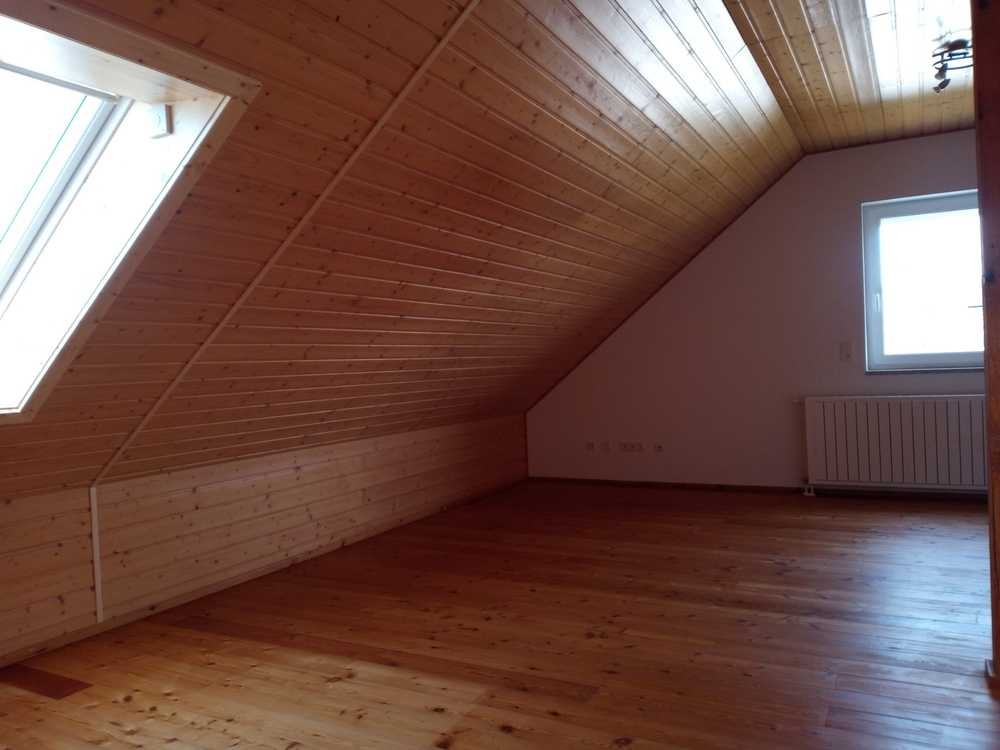 Das freistehende Haus besteht aus insgesamt zwei Wohneinheiten. Die hier angebotene neu renovierte Maisonette-Wohnung liegt im 1. Stock und im Dachgeschoss. Sie ist wie folgt aufgeteilt: Im 1. Stock befinden sich Badezimmer mit zwei Waschbecken und bodengleicher Dusche, ein kombinierter Wohn-, Koch- und Essbereich mit Zugang zum überdachten Ostbalkon (7m²), ein Abstellraum, ein Einbauschrank und eine Diele mit Holztreppe zum Dachgeschoss. Im holzvertäfelten Dachgeschoss gibt es ein Badezimmer (mit Waschbecken, WC-Anlage, Waschmaschinen- sowie Wäschetrockner-Stellplatz) und ein großräumiges Schlafzimmer mit Wandteiler, so dass bspw. ein separater Arbeitsbereich eingerichtet werden könnte. Beide Badezimmer haben Tageslichtfenster.