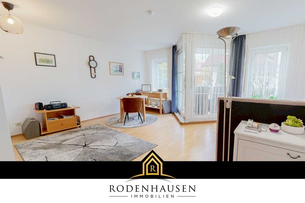 Diese Erdgeschosswohnung mit ca. 46 m² Wohnfläche befindet sich in einer attraktiven Lage von Graben. Der Schnitt der Wohnung ist für einen Einpersonenhaushalt ideal. Sie betreten die Wohnung durch eine großzügige Diele mit Platz für eine Garderobe oder einen großen Einbauschrank, links befindet sich das weiß geflieste Badezimmer mit Dusche, Wanne und Waschmaschinenanschluss, geradeaus gelangen Sie in den sehr hellen und geräumigen Wohn- und Schlafbereich. Durch die Architektur wirkt der Raum optisch durch die Fensterfront mit Südterrasse etwas abgegrenzt und bekommt einen ganz besonderen Charme. Eine Einbauküche ist ebenfalls vorhanden und mit Herd, Backofen, extra leisem Kühlschrank und Spülmaschine ausgestattet. Diele und Wohnraum sind mit hellem Laminatboden ausgestattet. Der Garten darf gemeinschaftlich genutzt werden und die Terrasse bietet sich zum Aufenthalt im Sommer an. Zur Wohnung gehört ein großes Kellerabteil mit Strom und Licht sowie ein Tiefgarageneinzelstellplatz.