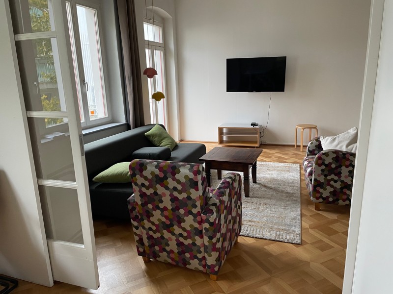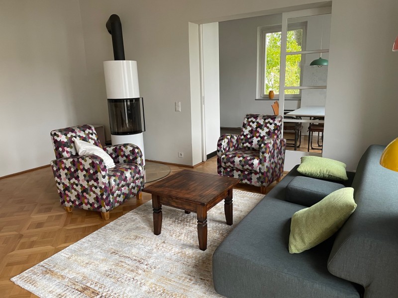 privater Anbieter, vollmöblierte 3 Zi-Whg für auf Zeit in Berlin Berufstätige auch mit Kind; Parkettboden, Kaminofen, GS, WM, Induktionsfeld, 2 Balkone.