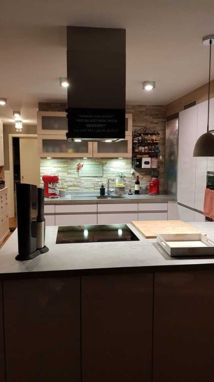 Die ambitionierte Einbauküche ist mit einem Herd, einem Dunstabzug, einer Spülmaschine, einen Kühlschrank und einem Backofen ausgestattet.
