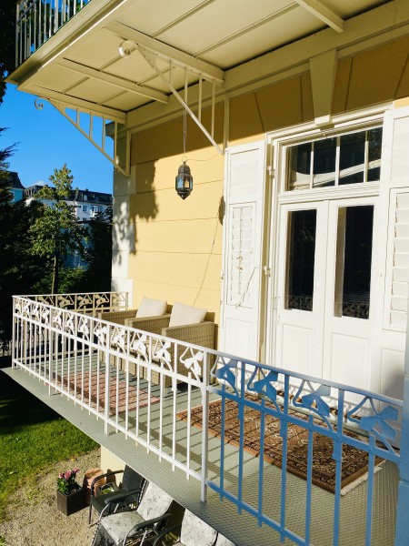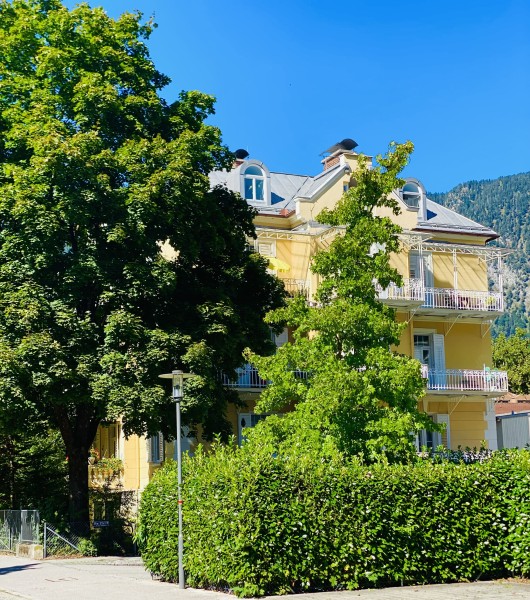 Die Erdgeschoß-/ Hochparterre-Wohnung befindet sich in einer denkmalgeschützten freistehenden faszinierenden Villa Residenz mit berauschendem Bergblick auf den Predigtstuhl und Hochstaufen.