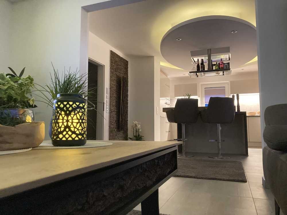 • Besonderheiten: Offener Wohn- und Essbereich, hochwertige Nolte-Küche mit Kochinsel, Thekenbereich, Barfach aus der Decke, abgehängte Decken mit indirekter Beleuchtung, italienischer Naturstein, Photovoltaikanlage, Klimaanlage, Wasserenthärtungsanlage, neue Fenster in Planung