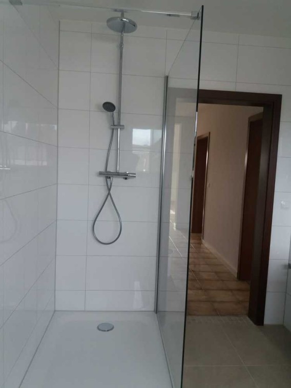 Durch den großzügigen Eingangsbereich gelangen Sie in das geräumige, offene Wohnzimmer. Das helle, neue Badezimmer, mit großem Fenster ausgestattet, besticht durch seine hochwertige Ausstattung.