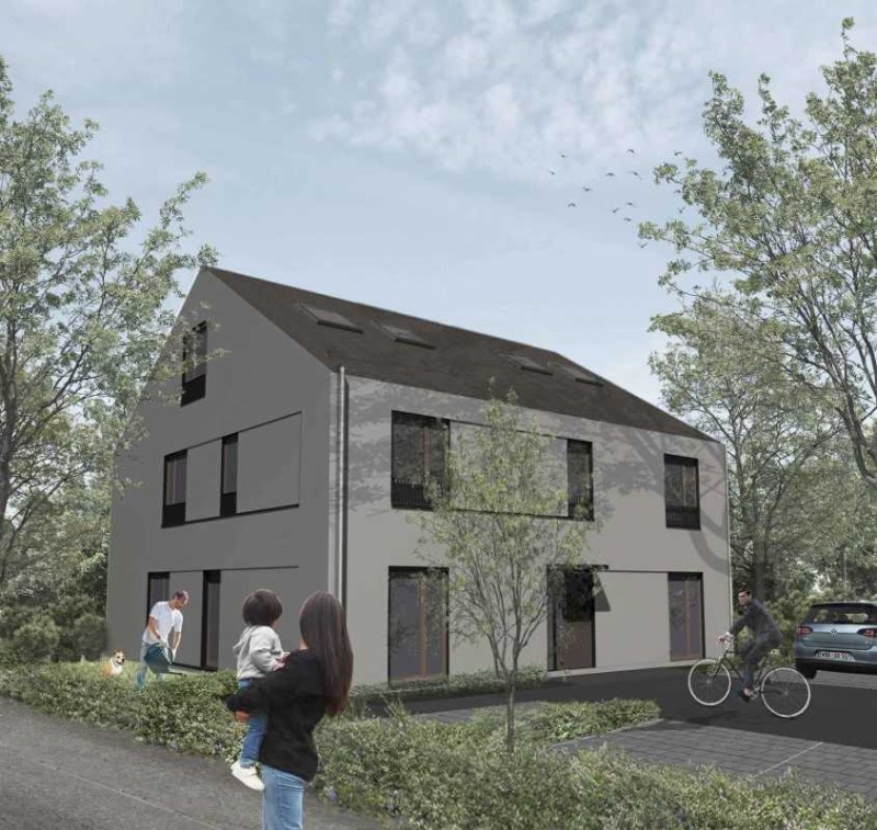 Die schöne Zwei-Zimmer-Wohnung befindet sich derzeit noch in der Entstehung. Sie ist eine von zwei spiegelgleich gebauten Wohnungen im Erdgeschoss.