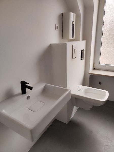 Über diese Diele erreichen Sie ebenfalls das kernsanierte geräumige Tageslichtbadezimmer. Es ist mit neuen Armaturen und Sanitäreinrichtungen ausgestattet und fugenlos gestaltet.