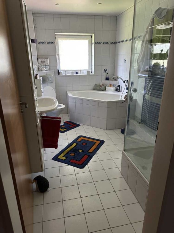 Diese helle 4-Zimmer-Wohnung mit ca. 125 m² Wohnfläche befindet sich im 1. Obergeschoss eines gepflegten Mehrfamilienhauses in Bergalingen. Die Wohnung verfügt über ein geräumiges Wohnkonzept mit normaler Ausstattungsqualität, einem Balkon und einer 42 qm großen Terasse der zum Entspannen einlädt. Eine ausgestattete Küche sowie ein Badezimmer sind vorhanden. Das Badezimmer ist mit Fußbodenheizung ausgestattet. Die Wohnung wurde vor einigen Jahren renoviert und der Boden im Schlafzimmer wird gerade neu gelegt. Das im Plan als Wohnzimmer ausgezeichnete Zimmer, wurde zu zwei Zimmern umgebaut. Leider ist kein aktuellerer Grundriss vorhanden.