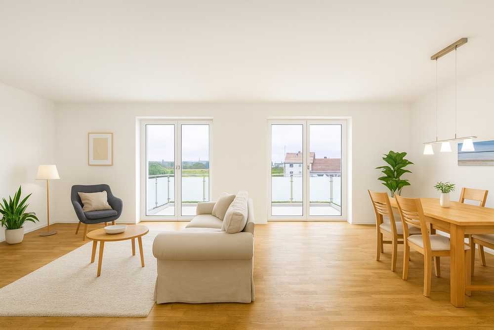 Für ein angenehmes Raumklima sorgt modernste Haustechnik: Eine effiziente Viessmann Luft-Wärmepumpe versorgt das gesamte Haus mit Wärme, unterstützt von Fußbodenheizung in allen Räumen. Dreifach verglaste REHAU-Kunststofffenster, kombiniert mit einer Wohnraumbelüftung mit Wärmerückgewinnung, sorgen für Behaglichkeit und Energieeinsparung. Hochwertige Details wie LAN- und SAT-Dosen in allen Räumen sowie 2,12 m hohe Innentüren runden das gehobene Ausstattungspaket ab.