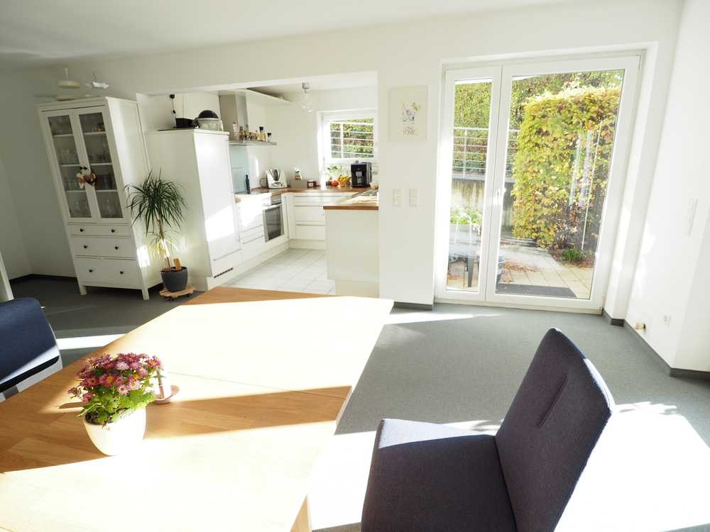 Sie besticht durch den großzügigen, lichtdurchfluteten Wohn- und Essbereich mit Zugang auf die überdachte Terrasse und in den gemütlichen Garten. An den Wohnbereich grenzt die offene, helle Küche an. Die Wohnung bietet ein kleines, separates Büro – ideal für das Home-Office. Von der Diele aus gelangt man in das gut geschnittene Schlafzimmer, sowie in das Tageslichtbadezimmer mit Dusche und Wanne sowie in die separate Toilette. Außerdem gibt es einen großzügigen Abstellkammer und eine Waschküche. Ein Stellplatz vor der Wohnung ist im Mietpreis enthalten. Die Wohnung ist mit Teppichboden und Fußbodenheizung ausgestattet.