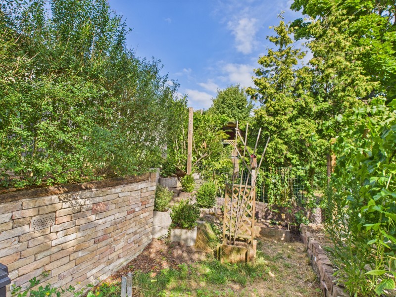 Das Haupthaus verfügt über 4 Zimmer (verteilt über 2 Etagen), 2 Tageslicht-Bäder, eine Dachterrasse, eine zusätzliche großzügige Terrasse zum Innenhof, ein Carport im Innenhof und einen schönen Garten mit großer Pergola. Zudem ist das Haupthaus zu ca. 2/3 unterkellert.