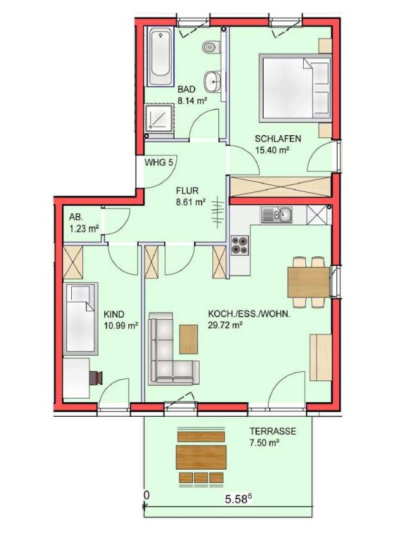 Auf Wunsch kann eine neue Einbauküche gestellt werden (zzgl. 90 € mtl.)