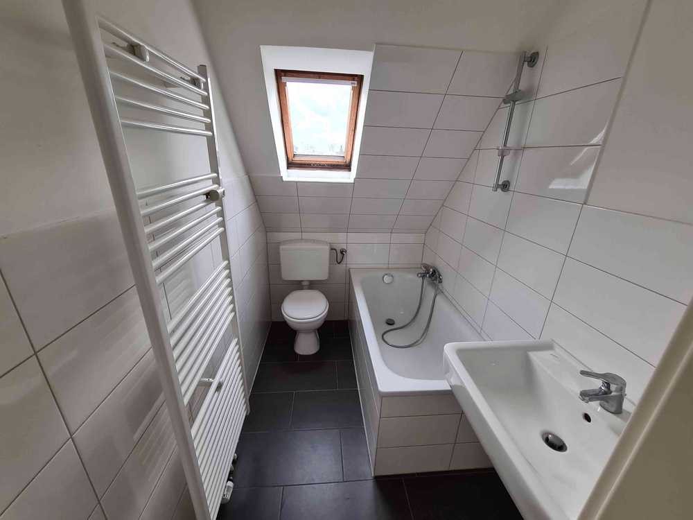Die schöne Wohnung liegt in der 2. Etage eines ruhigen Mehrfamilienhauses, und ist durch die leichten Dachschrägen super gemütlich. Erst 2018 wurde hier komplett saniert und renoviert. Neue Elektrik, ein modernes Badezimmer, schicke Bodenbeläge und weiße Tapeten sind nur ein Teil der Arbeit, die wir in die Wohnung gesteckt haben. Sie verfügen hier über eine kleine Diele, ein schickes Wohnzimmer mit Zugang zur kleinen Küche, ein Schlafzimmer, sowie ein Bad mit Fenster. Wir freuen uns auf Ihre ausführliche Anfrage. Die Wohnung ist sofort bezugsfertig, wir suchen einen Mieter, welcher noch dieses Jahr die Wohnung anmieten kann. Bitte beachten: Die Wohnung hat KEINEN Balkon. Die Grünflächen hinter dem Haus können aber von allen Mietern genutzt werden.