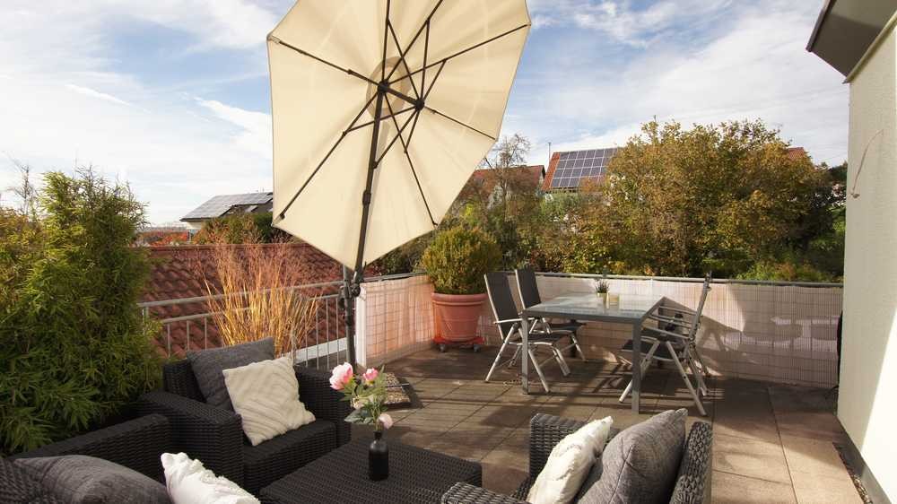 - einem sehr großen Balkon mit Weitblick und perfekt für entspannte Abende im Freien