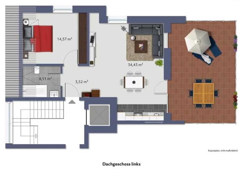 Dachterrasse: Sonnige Dachterrasse mit Blick ins Grüne