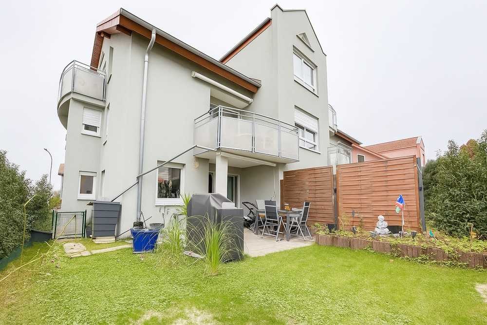 Der Wohnbereich öffnet sich direkt zur attraktiven Gartenterrasse, die zunächst überdacht ist und damit perfekt für laue Sommerabende, entspannte Grillrunden oder gemütliche Stunden mit Freunden und Familie geeignet ist. Der angrenzende Garten bietet zusätzlichen Raum zum Spielen, Entspannen und Natur genießen – ein kleines, privates Paradies direkt vor der eigenen Tür.