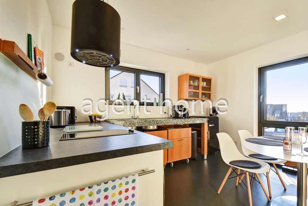 Die großzügige Wohnküche ist mit einem Geschirrspüler, einer Mikrowelle, einem Toaster, einem Wasserkocher, einer Kaffeemaschine sowie sämtlichem Kücheninventar ausgestattet. Außerdem gibt es einen Esstisch für vier Personen.