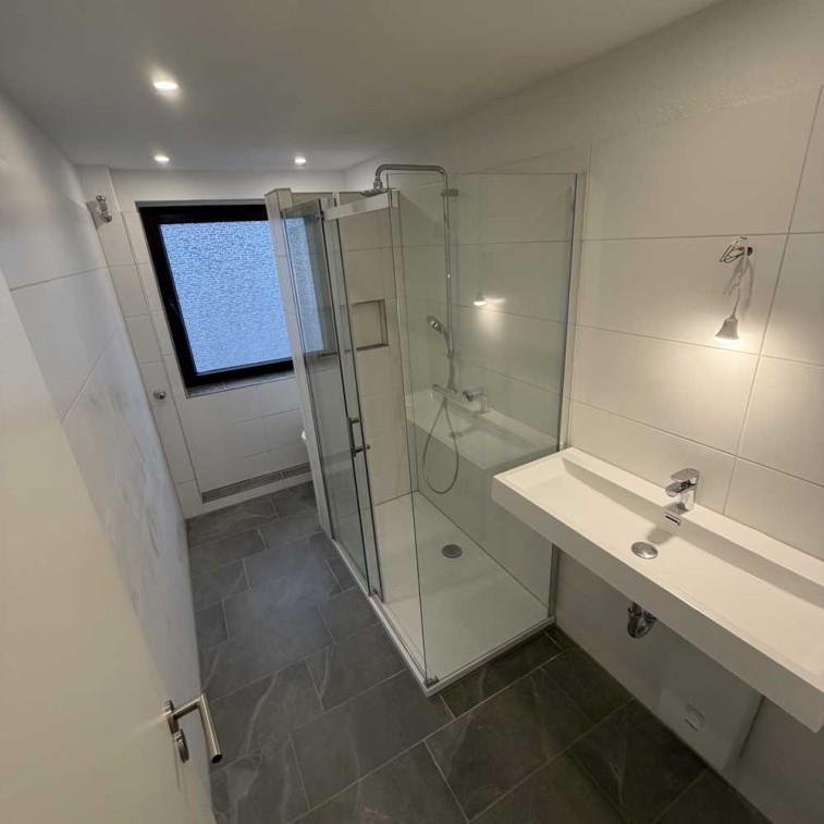 • Modernes Bad mit großer Dusche, Regenwalddusche und hochwertigen Armaturen
