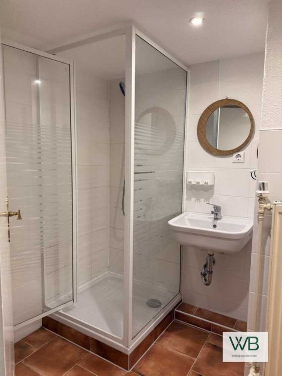 Das Badezimmer ist mit einer modernen Dusche ausgestattet, die Komfort und Bequemlichkeit bietet.