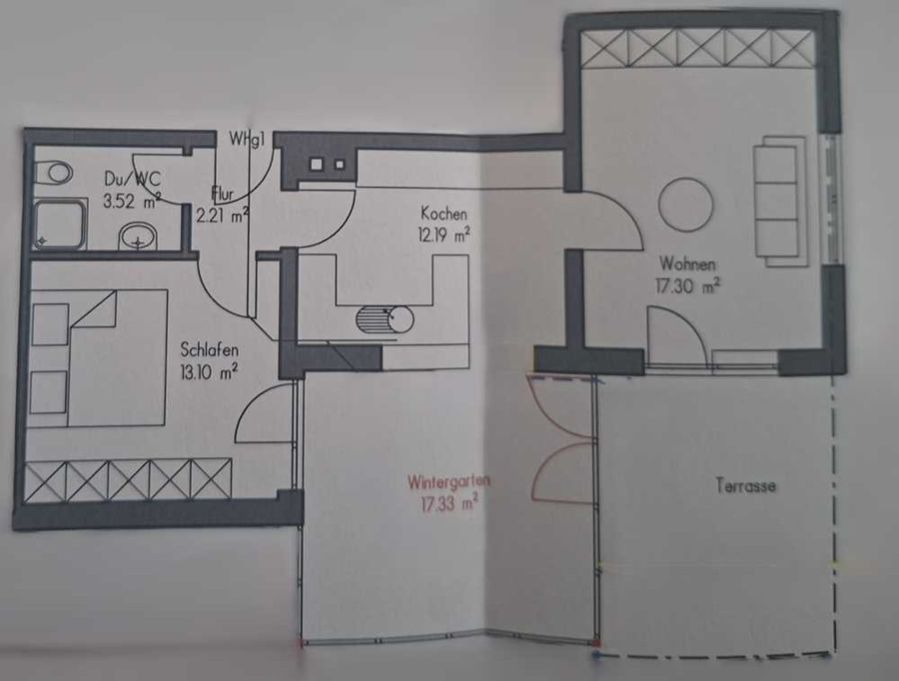 Die Wohnung überzeugt durch eine angenehme Raumaufteilung, helle Räume, einen gemütlichen warmen Wintergarten mit Fußbodenheizung und eine großzügige Terrasse mit Südausrichtung, die zum Entspannen einlädt. Die nicht einsehbare Lage bietet ein hohes Maß an Privatsphäre und Ruhe – ideal für Singles oder Paare, die Wert auf Komfort und eine gepflegte Umgebung legen.