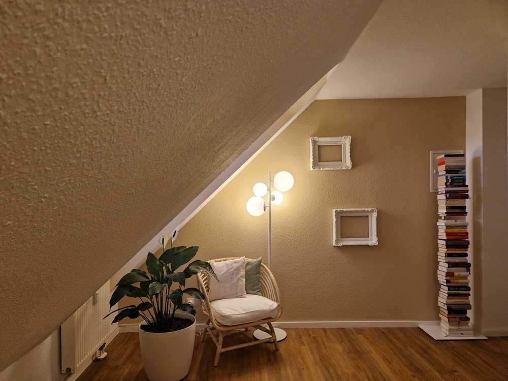 Die Wohnung befindet sich im Dachgeschoss (5. Etage) eines Mehrfamilienhauses mit Aufzug in einem ruhigen und grünen Wohngebiet in Zentrumsnähe. Der Bahnhof ist fussläufig in weniger als 15 Minuten erreichbar, ein Tiefgaragenstellplatz steht bei Bedarf für 50 Euro pro Monat zur Verfügung. Das Haus verfügt über einen Wäsche- und Fahrradkeller.