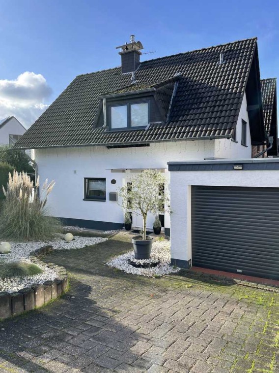 Bei dem dreistöckigen Haus handelt es sich um eine attraktive Immobilie, die durch eine gehobene Innenausstattung besticht und zum 01.02.2026 bezogen werden kann. Wie für modern ausgestattete Objekte üblich, gehören zu den vier einladenden Zimmern auch ein Wellness-Badezimmer sowie ein separates Gäste-WC. Der hochwertige Kamin (Gas) lässt gerade im Winter die kalten Tage gemütlicher gestalten. Besonders toll ist die Grundstücksgröße von 294 qm, die einen schönen großen Vorgarten, eine Terrasse mit uneinsehbarem Garten sowie eine zweite Terrasse zu bieten hat. Aufgrund der Überdachung der Terrasse, kann man den Abend auch bei lauem Sommerregen draußen verbringen. Die im Terrassendach eingebauten Mini-Spotlights ermöglichen lange Abende auch bei Dunkelheit. Hervorzuheben ist die in der Terrassenüberdachung eingebaute Photovoltaikanlage, welche nicht nur bei Sonnenlicht Strom einspeist, sondern das ganze Jahr über bei Tageslicht. Mit diesem Strom versorgen Sie nicht nur sich selbst, sondern verkaufen den verbliebenen Strom an den örtlichen Stromversorger. Damit ist Ihnen eine jährliche Erstattung sicher. Eine hochwertige Einbauküche mit Elektrogeräten von Miele (inkl. einem Dampfgarer) ist vorhanden und im Mietpreis inbegriffen. Das Haus wurde 1990 erbaut, ist mit einem Dachboden versehen, voll unterkellert und wird per Gas-Heizung (Buderus) beheizt. Eine Kernsarnierung in 2010/2011, sowie mehrere Modernisierungen wurden vorgenommen und begründen den Wert dieser schönen Immobilie. Der Keller ist wohnlich ausgebaut, und bietet neben dem modernen Waschraum mit amerikanischem Waschbecken, einen Haushaltsraum, ein weiteres großes Zimmer mit Einbauschränken und ein daran angrenzendes Zimmer (z.B. Ankleide oder Hobbyraum). Das Angebot runden eine Garage mit elektr. Rolltor und ein weiterer Stellplatz, welche ebenfalls im Mietpreis inbegriffen sind, ab.