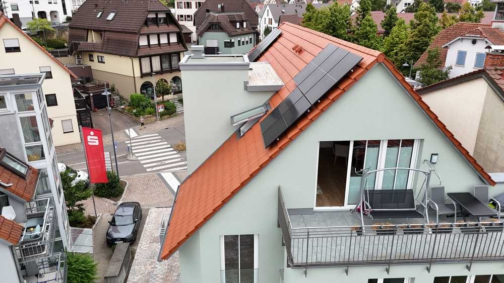 Großzügige helle Dachgeschosswohnung im Herzen von Flein, Zugang barrierefrei, begehbare Dusche! Die Wohnung befindet sich im Dachgeschoss eines 2024 fertig gestellten Mehrfamilienhauses. Sie wohnen auf ca. 90 m² Wohnfläche, die sich ideal auf 3 Zimmer mit Küche, Tageslichtbad, großzügigem Abstellraum und Flur aufteilen. Die Wohnung kann durch ein großzügiges Treppenhaus oder barrierefrei mit dem verglasten Aufzug erreicht werden. Tageslichtbad und WC sind mit hochwertigen Sanitäranlagen versehen. Ein gemütlicher moderner Vinylboden ist in der Wohnung verlegt. Es erwartet Sie eine moderne Einbauküche mit Induktionskochfeld. Die Fenster sind 3fach verglast und mit Schallschutz versehen.