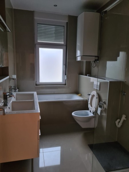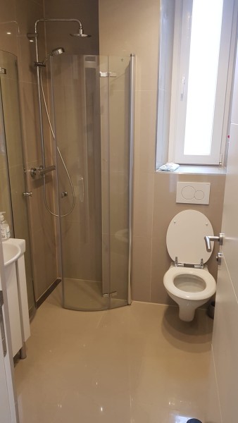 Zwei moderne Badezimmer – eines mit Badewanne, eines mit Dusche – erhöhen den Komfort.