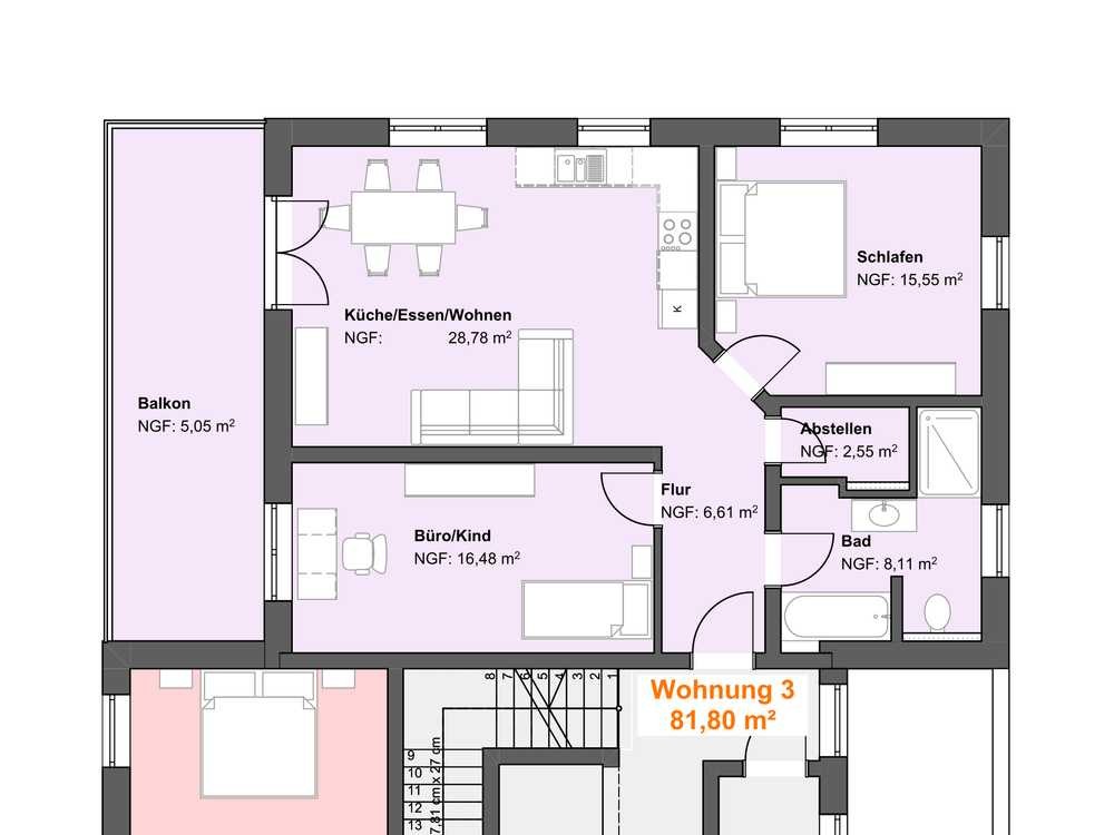 Erstbezug in exklusiver 3-Zimmer Wohnung mit Balkon (Whng. 3)