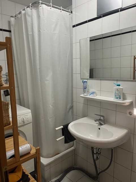 einem Waschbecken, WC und einer Dusche ausgestattet.