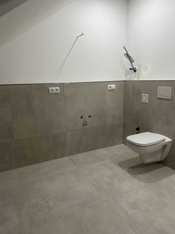 Im Gebäude wird demnächst auch vom Schnitt eine baugleiche Wohnung ohne Schräge fertig gestellt mit einer Terrasse.