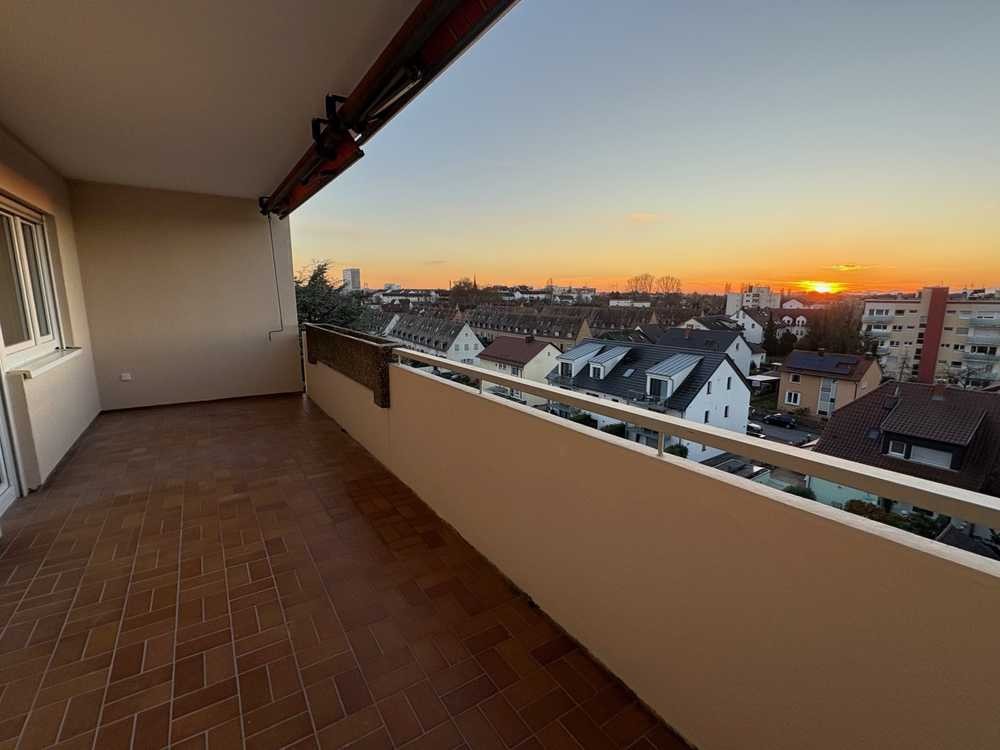Das Highlight ist der geräumige Balkon, vom Wohnzimmer und 2 Schlafzimmern aus zugänglich, mit Sicht zum Pfälzer Wald.