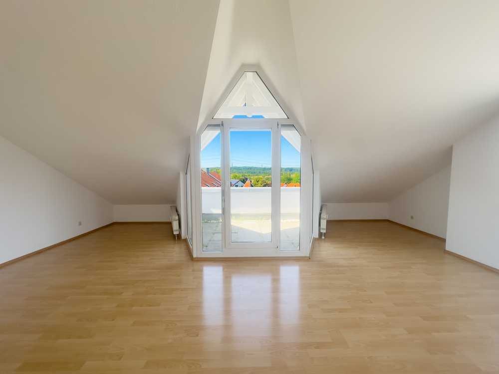 Herzstück der Wohnung ist der großzügige Wohn- und Essbereich, der mit großen Fensterfronten lichtdurchflutet ist und durch seine besondere Raumstruktur ein behagliches Wohngefühl vermittelt. Eine zusätzliche Loggia im Bereich des Giebels, nach Westen ausgerichtet, bietet besonders in den Abendstunden einen idyllischen Rückzugsort.