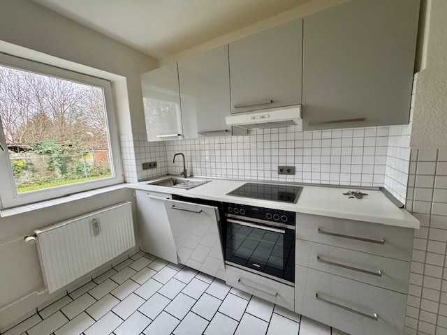 Diese Wohnung befindet sich im Erdgeschoss (Hochparterre) eines Mehrfamilienhauses. Sie verfügt über eine geräumige Küche inkl. einer Einbauküche mit Herd und Spüle, einem hell gefliesten Badezimmer mit Badewanne und Fenster, einem gemütlichen Wohnzimmer sowie zwei Schlafzimmern.