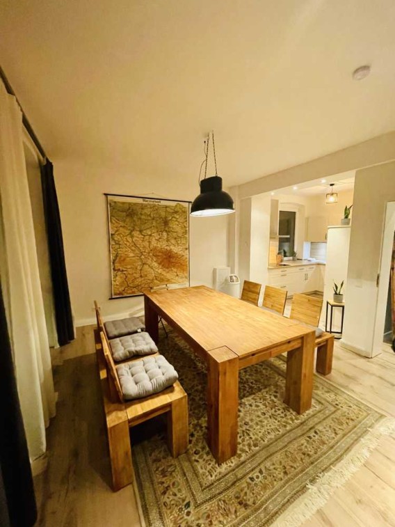 Das Herzstück der Wohnung ist die offene, moderne Küche, die mit hochwertigem Küchenequipment ausgestattet ist und zu geselligen Kochabenden einlädt. Der angrenzende, lichtdurchflutete Wohn- und Essbereich bietet viel Platz zum Entspannen und Wohlfühlen.