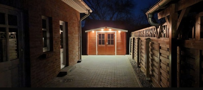 Zwei Gartenhäuser ermöglichen zudem die Lagerung für Gartengeräte, Fahrräder und dergleichen mehr.