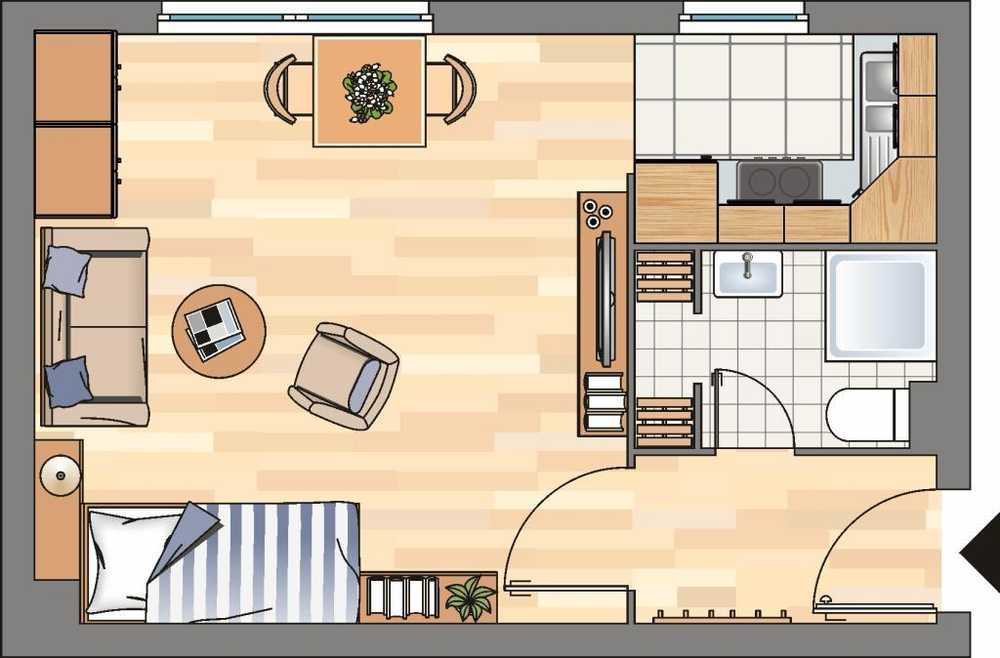 Die Wohnungen haben 1 bis max. 4 Zimmer.