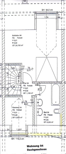 Ein weiteres kleines Zimmer (nicht als Kinderschlafzimmer geeignet) mit Parkettboden ist über die kleine Diele im Obergeschoss unweit vom Schlafzimmer zu erreichen.
